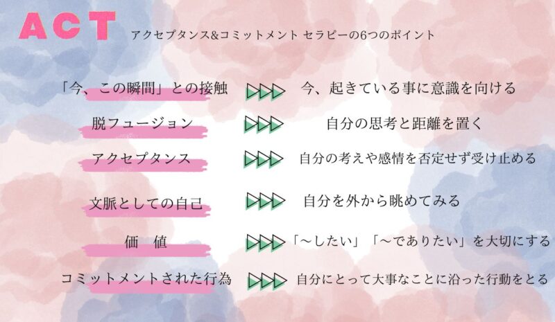 上記のとおり、「アクセプタンス&コミットメント セラピー」の頭文字、